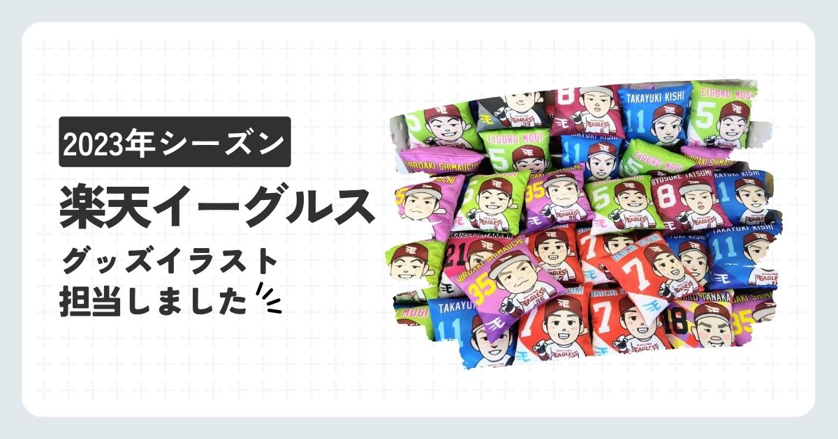 2023年シーズン展開の、楽天パーク内GATE6クレーンゲームコーナーにてゲットできるプライズイラストを担当いたしました。