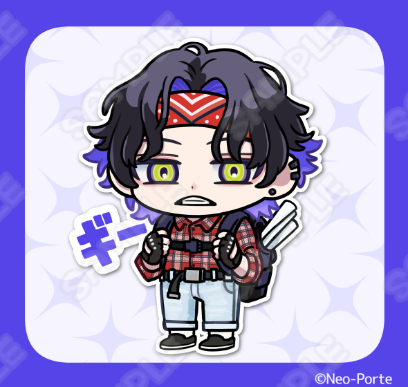 VCRGTAで爆誕したオタクキャラの名言「ギー」をモチーフに、ギーホルダーのビジュアルを制作しています。